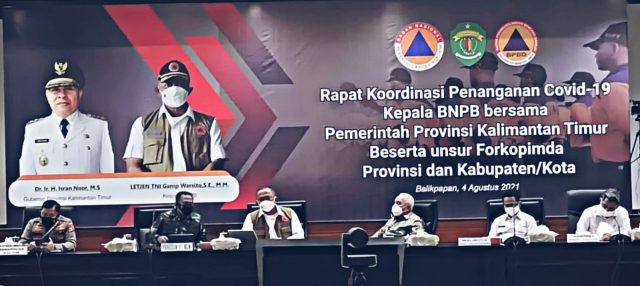 Balikpapan, Borneoupdate.com – Badan Nasional Penanggulangan Bencana (BNPB) menggelar rapat koordinasi penanganan pandemi Covid-19 di wilayah Kalimantan Timur, Rabu (04/08) siang. Pertemuan yang dipusatkan di Balikpapan ini dilakukan secara daring dan luring ini dihadiri Gubernur Kaltim, forum komunikasi pimpinan daerah dan sejumlah kepala daerah kabupaten-kota.