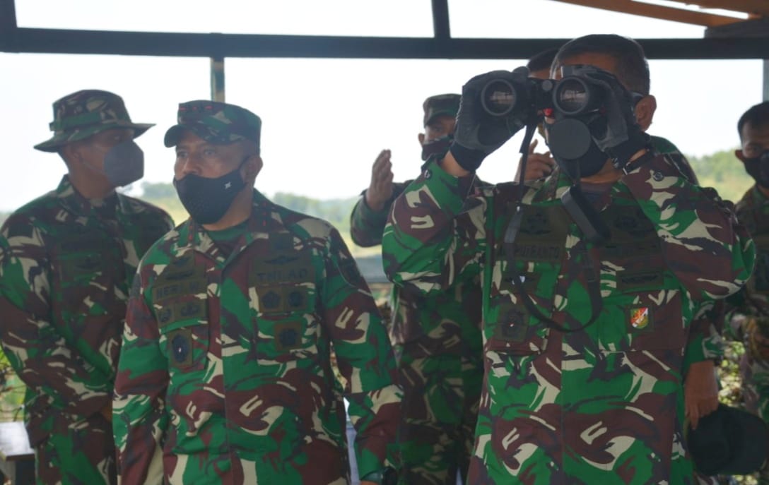 Balikpapan, Borneoupdate.com – Dalam rangka meninjau persiapan latihan bersama Garuda Shield 15/2021 antara TNI AD dengan US Army di wilayah Kodam VI/Mulawarman, Pangdam VI/Mulawarman Mayjen TNI Heri Wiranto, S.E., M.M., M.Tr. (Han) mendampingi Komandan Komando Pembina Doktrin, Pendidikan dan Latihan (Dankodiklat) TNI Angkatan Darat Letnan Jenderal TNI AM Putranto, S.Sos dan Asisten Latihan (Aslat) Kasad Mayjen TNI Harianto yang berlangsung di Puslatpur Amborawang Kodam VI/Mulawarman, Minggu (25/4/2021).