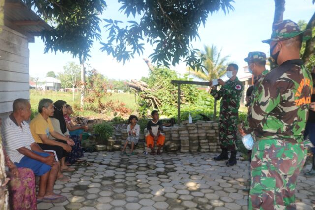 Dalam pelaksanaanya Personil Kesehatan Yang tergabung dalam Satgas TMMD Ke – 109 Kodim 0907/Trk mendatangi satu persatu rumah warga, memberikan pemahaman Protokol Kesehatan yang baik dan benar sekaligus membagikan masker kepada masyarakat.