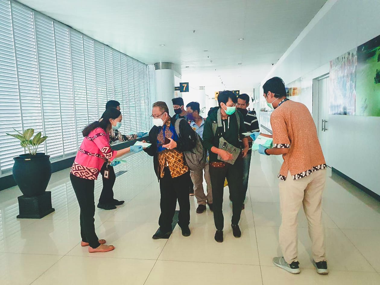 Balikpapan, Borneoupdate.com – Dalam rangka memperingati Hari Pelanggan Nasional Tahun 2020 di Bandar Udara Internasional Sultan Aji Muhammad Sulaiman (SAMS) Sepinggan Balikpapan, PT Angkasa Pura I (Persero) Balikpapan berbagi Hand Sanitizer dan Masker kepada pengguna jasa sebagai wujud kepedulian terhadap pandemi Corona Virus Disease 2019 (COVID-19).