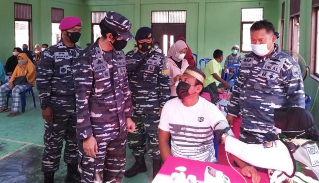 Balikpapan, Borneoupdate.com – Guna mensukseskan program pemerintah dalam menanggulangi penyebaran Virus Covid 19. Pangkalan TNI AL Balikpapan laksanakan Serbuan Vaksinasi, sebanyak 225 dosis yg telah disiapkan oleh Tim kesehatan Lanal Balikpapan Bagi Kampung Bahari Nusantara Masyarakat Maritim Kelurahan Pantai Lango, sebelumnya Lanal Balikpapan juga sudah melaksanakan serbuan Vaksin pada bulan Juni Di Tempat yang sama dengan total 275 dosis.sehingga sampai saat ini sudah total 500 dosis tersalurkan. kegiatan serbuan Vaksin ini dipimpin langsung oleh Komandan Lanal Balikpapan Kolonel Laut (P) Siswo Widodo, S.T., dan Pantai lango merupakan salah satu wilayah yang masuk kedalam lingkup wilayah kerja Lanal Balikpapan, Serbuan Vaksinasi ini dilaksanakan bertempat di gedung serbaguna Kelurahan Pantai Lango pada hari Senin (26/07/21)