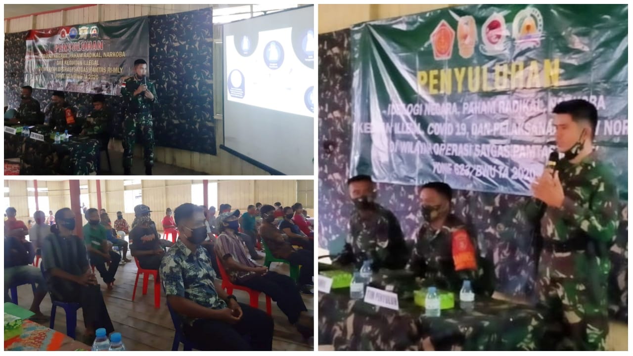 Tulin Onsoi, Borneoupdate.com – Dalam rangka kegiatan teritorial yang dilaksanakan Satgas Pamtas Yonif 623/BWU, Perwira Hukum dan dokter Satgas ikut berpartisipasi dengan melaksanakan kegiatan penyuluhan kepada masyarakat Kec. Tulin Onsoi dengan materi Ideologi Pancasila, Radikalisme, Narkotika, Covid-19 dan New Normal.