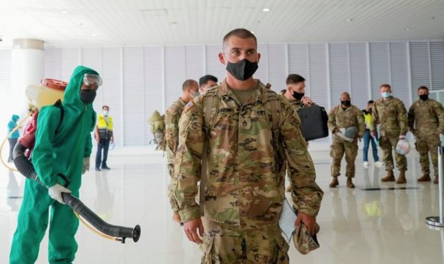 Jakarta, Borneoupdate.com – Protokol Kesehatan (Prokes) Covid-19 yang sangat ketat dilakukan terhadap 108 personel Tentara Angkatan Darat Amerika Serikat ( US Army) begitu mendarat di Bandara Sultan Aji Muhammad Sulaiman (SAMS) Sepinggan Balikpapan, Senin (26/7/2021). Kedatangan 108 tentara AS tersebut, untuk mengikuti Latihan Bersama “Garuda Shield” ke 15 / 2021, yang merupakan latihan terbesar dalam sejarah kerja sama antara TNI AD dengan AD Amerika Serikat. Demikian disampaikan Kepala Dinas Penerangan, Brigjen TNI Tatang Subarna dalam keterangan pers tertulisnya, Senin (26/7).