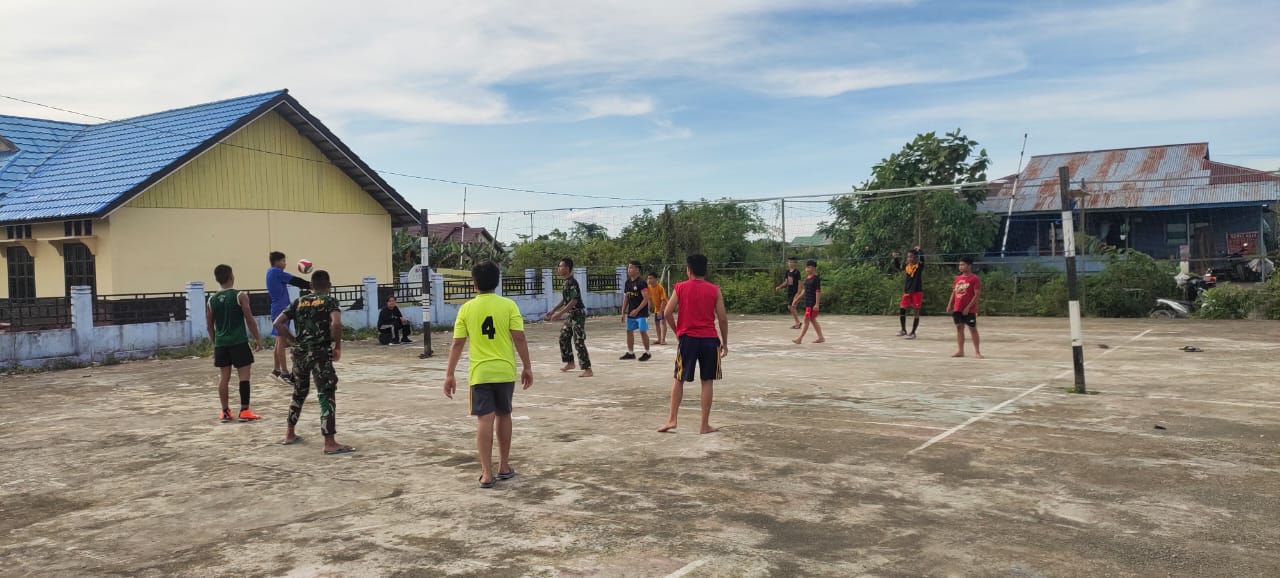Saat bermain voli bersama remaja desa, anggota Satgas TMMD Reguler Ke-110 Kodim 0903/Tsr, menyempatkan diri untuk mensosialisasikan program dan manfaat dari olahraga itu sendiri, terangnya.