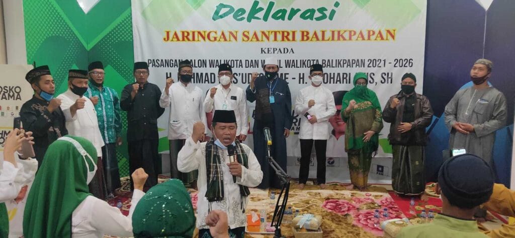 Balikpapan, Borneoupdate.com – Jaringan Santri Balikpapan (JSB) menyampaikan deklarasi untuk memenangkan pasangan calon Wali Kota dan Wakil Wali Kota Balikpapan, Rahmad Mas’ud – Thohari Azis di Pilkada Serentak Kota Balikpapan 2020, Jumat (20/11) malam.