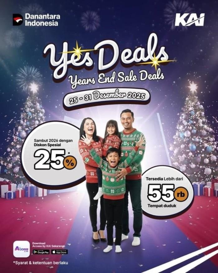 Bandung, Jawa Barat – PT Kereta Api Indonesia (Persero) Daerah Operasi 2 Bandung mengumumkan program promo akhir tahun bertajuk “YES DEALS (Years End Sale Deals)” sebagai bentuk apresiasi kepada pelanggan sekaligus mendukung kelancaran mobilitas masyarakat menjelang libur Natal dan Tahun Baru 2025/2026.