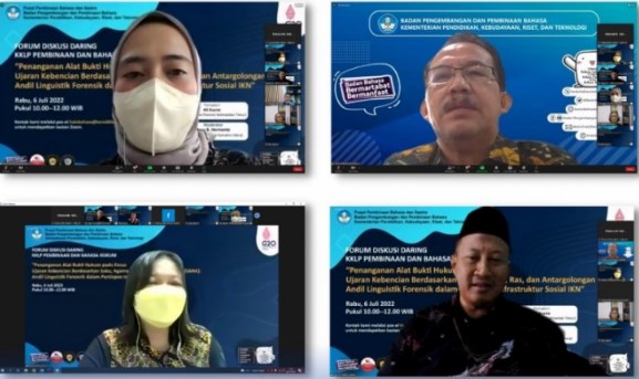 Salah satu fenomena yang marak yakni ujaran kebencian. Selaras dengan hal tersebut, forum daring ini pun mengangkat tema yakni Penanganan Alat Bukti Hukum pada Kasus Ujaran Kebencian Berdasarkan Suku, Agama, Ras dan Antargolongan (SARA) yang berfokus pada Andil Linguistik Forensik dalam Persiapan Infrastruktur Sosial Ibu Kota Negara (IKN) yang disampaikan oleh Ali Kusno, selaku Pengkaji Bahasa dan Sastra dari Kantor Bahasa Provinsi Kalimantan Timur.