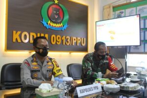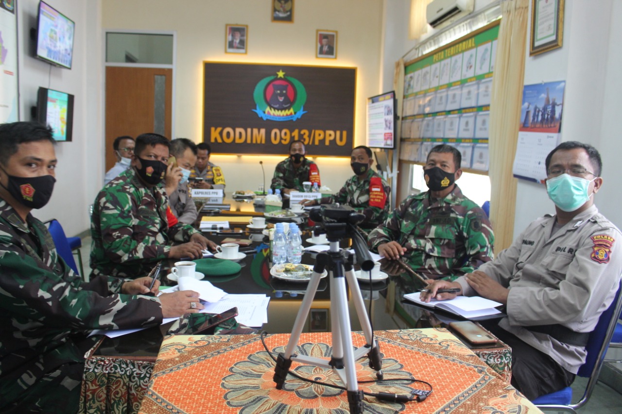 Guna mengantisipasi penyebaran Covid-19 saat libur panjang di akhir bulan Oktober 2020 dan aksi unras penolakan Omnibuslaw, Dandim 0913/PPU Letkol Inf Dharmawan beserta Kapolres PPU AKBP Hendrik Hermawan SIK, mengikuti vicon dari Pangdam VI Mlw Mayjen TNI Heri Wiranto bersama Kapolda Kaltim Irjen Pol. Drs. Herry Rudolf Nahak, M.Si., yang di laksanakan di ruang Vicon Makodim 0913/PPU.