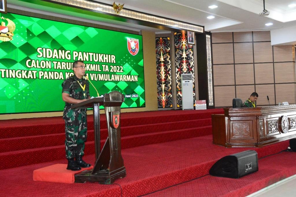 Pelaksanaan Sidang Pantukhir tingkat Panda Kodam VI/Mlw berlangsung di Aula Makodam VI/Mlw Balikpapan Selasa (28/6) yang dipimpin oleh Kepala Staf Kodam VI/Mlw Brigjen TNI Ibnu Bintang Setiawan.