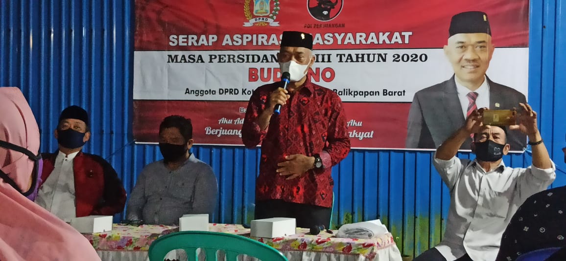 ” Tentunya reses ini berbeda dengan yang kemarin, karena warga menggunakan masker dan berjaga jarak. Ini bagian dari protokol kesehatan,” jelas Anggota Komisi IV DPRD Balikpapan Budiono saat melakukan reses di Jalan Gunung IV Kelurahan Margomulyo, Jum’at (07/11/2020).