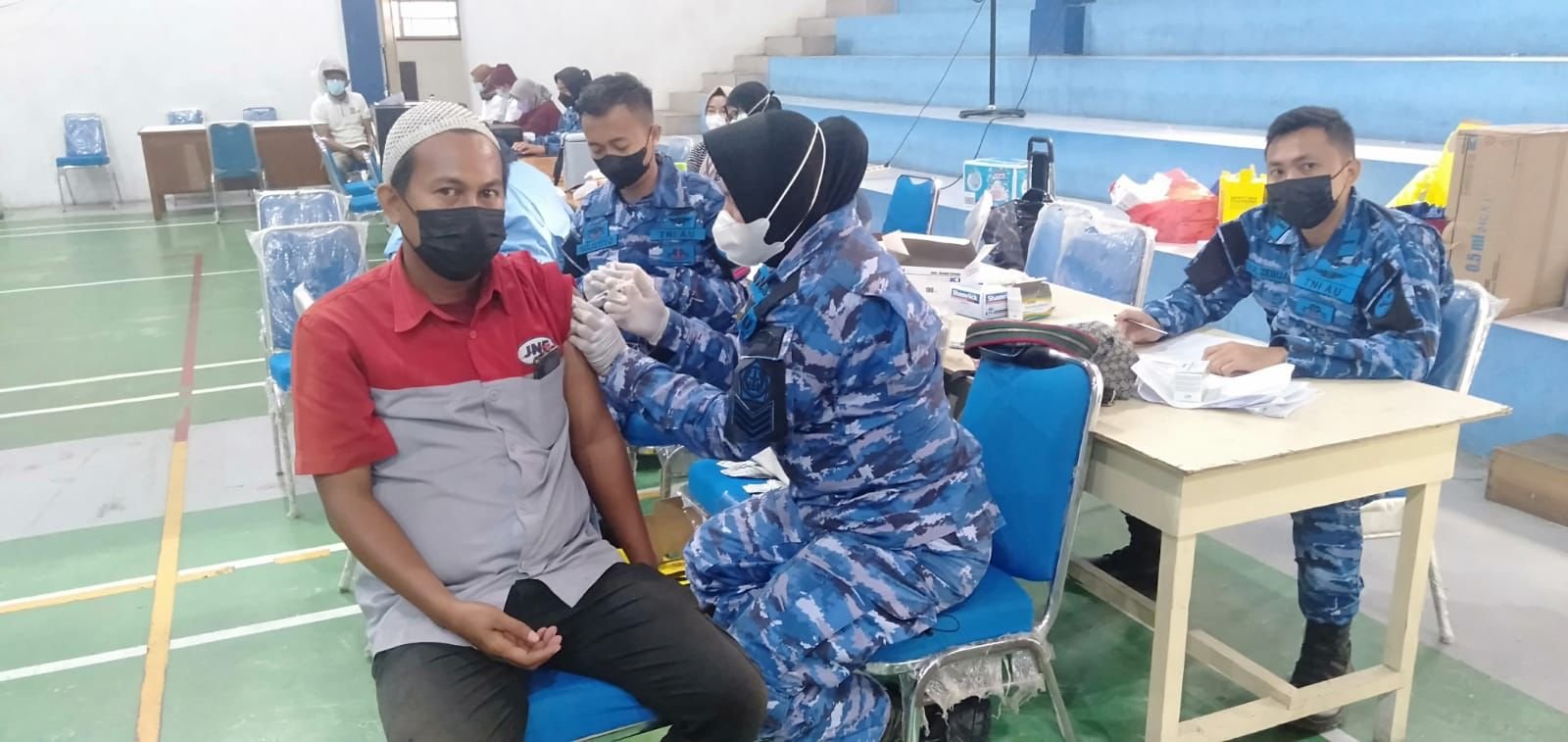 Balikpapan,Borneoupdate.com – Lanud Dhomber bekerjasama dengan Dewan Perwakilan Rakyat Daerah (DPRD) Kota Balikpapan, Pemerintah Kota (Pemkot) Balikpapan dan LPM Kelurahan Baru Ulu menggelar Serbuan Vaksinasi Covid-19 massal dengan Jenis vaksin Astrazaneca, bertempat di Gedung Olahraga (GOR) Kelurahan Baru Ulu Balikpapan Utara. Balikpapan, Rabu (8/12/21).