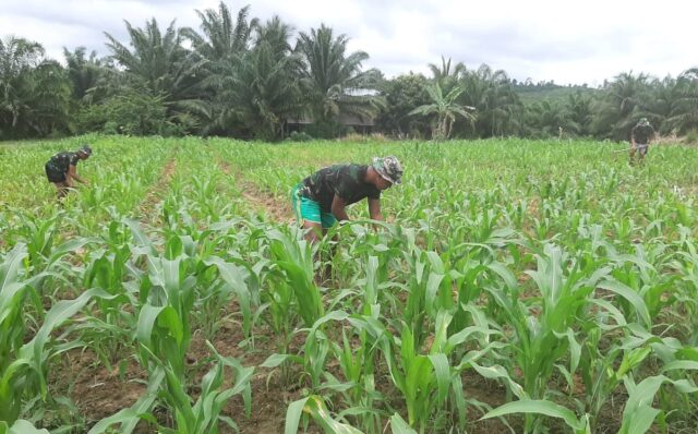 Praka Ngatijo yang ditemui saat membersihkan ilalang di kebun pos bersama Praka Ilham dan Pratu Sudirman mengatakan bahwa jagung yang ditanam dua bulan lagi akan panen.