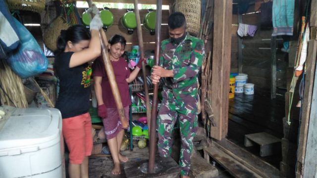 Mahulu, Borneoupdate.com – Anggota Satgas Yonif 614/Rjp di Pos Long Pujungan kecamatan Long Pujungan Kab.Malinau Provinsi kalimantan Utara di bawah Pimpinan Kapten Inf Didik Prasetyo selaku Komandan SSK-2 membantu Ibu-ibu PKK setempat membuat makanan tradisional yaitu Makanan Tradisional Emping Padi Pulut (Emping Ketan)