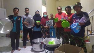 Adzan maghrib berkumandang, saya bersama beberapa relawan yang tersisa pun melaksanakan sholat berjamaah. Tidak seberapa lama para relawan yang membagikan nasi bungkus berdatangan. Termasuk Iwan dan Tamam yang mendampingi personil dapur umum berbelanja peralatan memasak. Kami pun melakukan penyerahan secara resmi alat-alat itu kepada penanggung jawab dapur umum. “Sekitar Rp 3,2 juta kita habiskan untuk pembelian peralatan dapur,” lapor Rohiman.