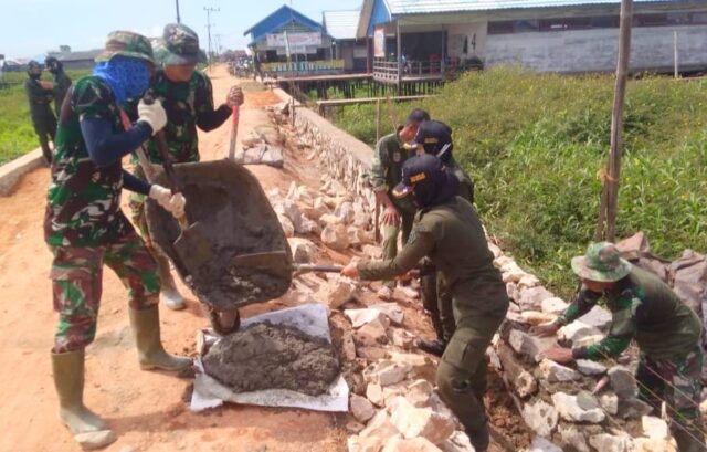 AMUNTAI, Borneoupdate.com – Resimen Mahasiswa (Menwa) STAIRAKHA dan STIPER Amuntai melaksanakan kerja bhakti di lokasi TNI Manunggal Membangun Desa (TMMD) Reguler Ke 109 Kodim 1001/Amuntai Desa Sarang Burung Kecamatan Danau Panggang Kabupaten Hulu Sungai Utara, Selasa (13/10/2020)
