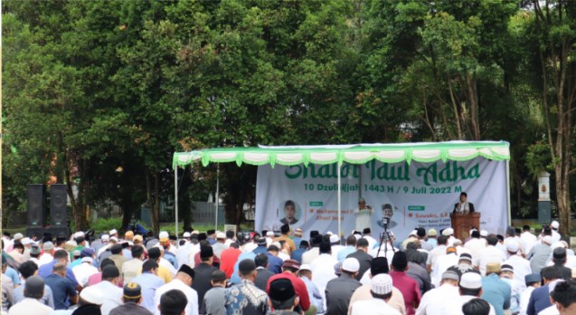 Samarinda – Ratusan jamaah Muhammadiyah memadati halaman GOR Segiri untuk melaksanakan ibadah salat Iduladha 1443 Hijriyah. Pelaksanaan shalat dimulai pada Sabtu pagi, pukul 07.15 Wita. Kepala Dinas Pendudukan dan Pencatatan Sipil (Disdukcapil) Kota Samarinda, Abdullah, turut hadir mewakili Wali Kota Samarinda, Andi Harun.