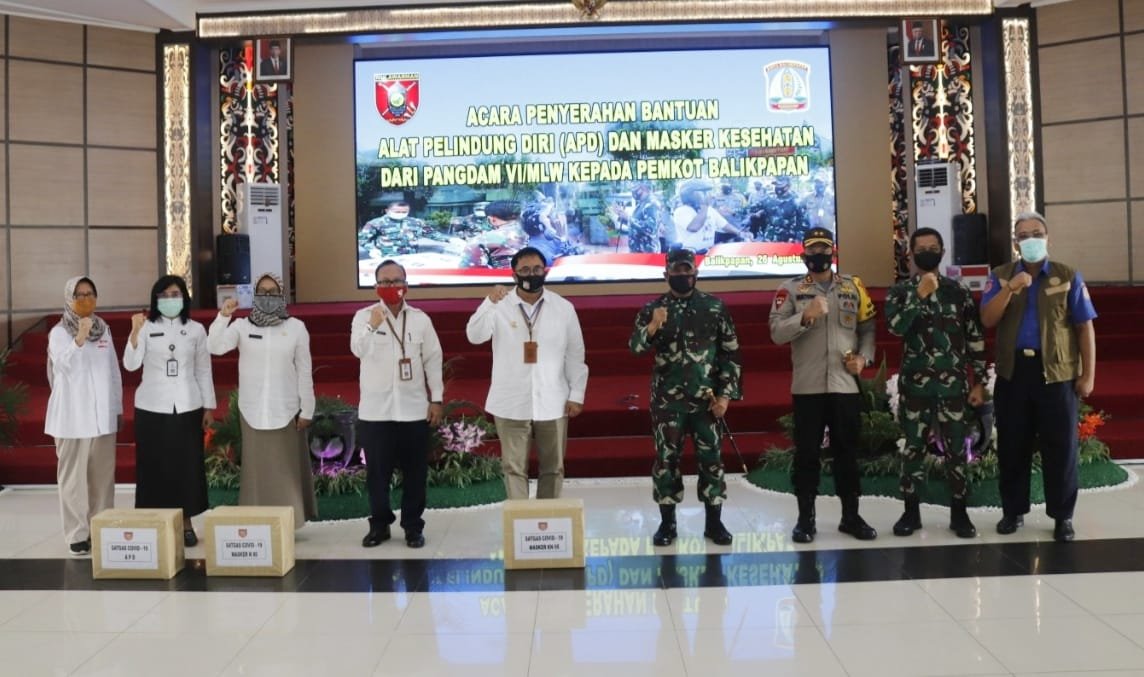 PANGDAM SERAHKAN BANTUAN APD DAN MASKER KE PEMKOT BALIKPAPAN