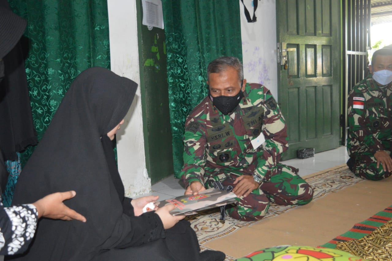 Setibanya di rumah duka,Pangdam VI/Mlw Mayjen TNI Heri Wiranto menyampaikan rasa belasungkawanya kepada keluarga yang di tinggalkan.
