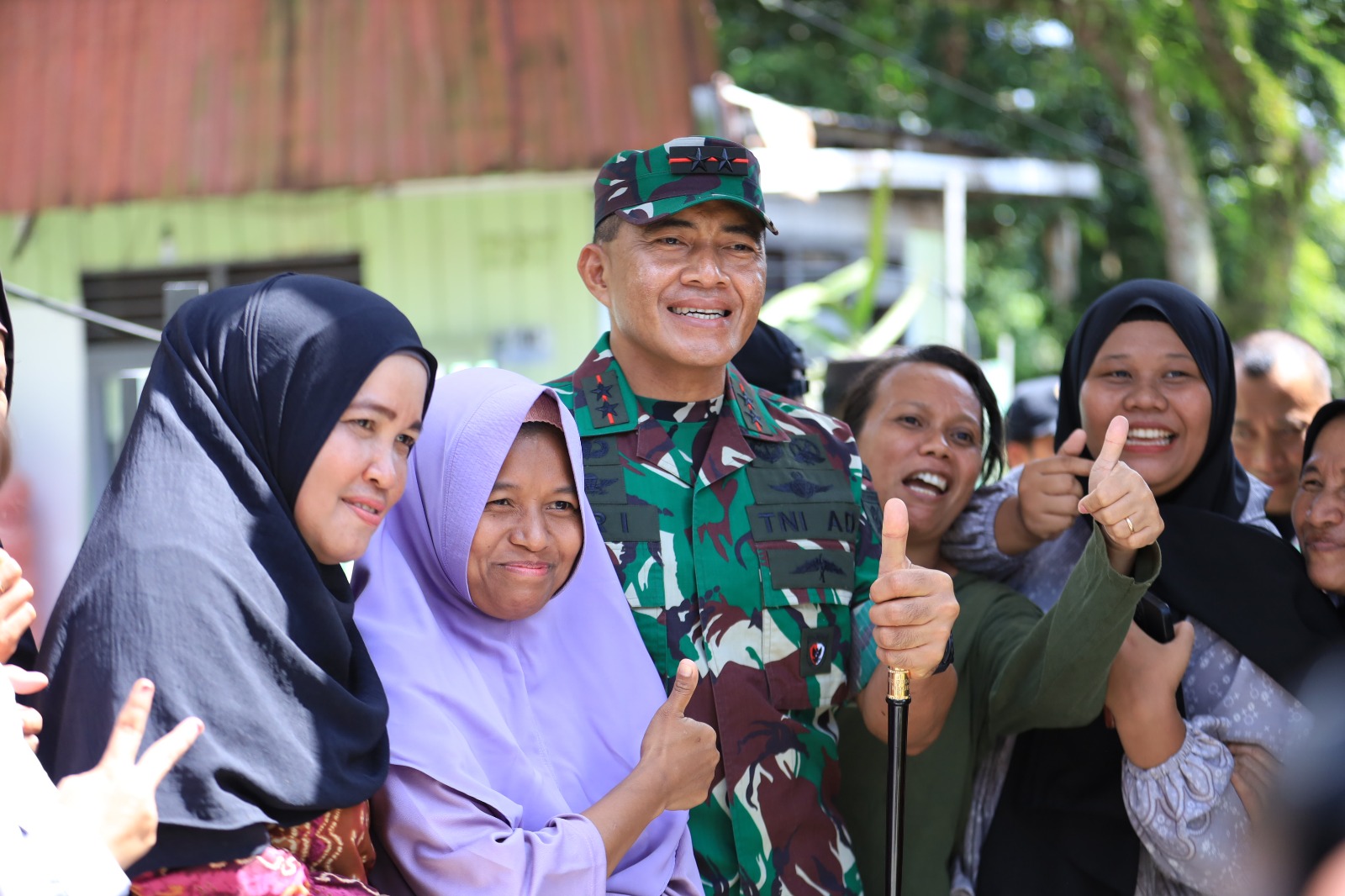 Kedekatan Pangdam VI/Mlw bersama warga terlihat lagi dari para ibu-ibu dilokasi karya bakti yang mengajak foto bersama Pangdam.
