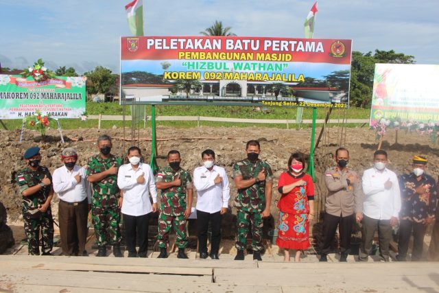 Balikpapan, Borneoupdate.com – rangkaian acara peresmian kantor Makorem 092/Maharajalila juga dilakukan peletakan batu pertama pembangunan Masjid Hizbul Wathan Korem 092/Maharajalila oleh bapak Panglima Kodam VI/Mlw bertempat di Jalan Katamso Tanjung Selor, Rabu (22/12/2021).