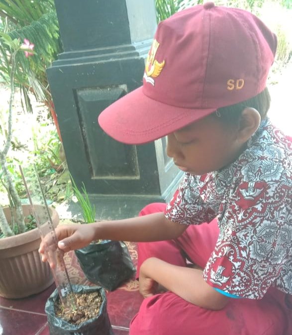 Cinta juga membuat laporan dalam format video agar teman yang lain yang kesulitan menanam bawang merah. Setelah 2 minggu, siswa memilih menaruh tanamannya di sekolah daripada di rumah, agar nantinya dapat bersama-sama merawat tanaman bawang merah. (TS/ FAD)