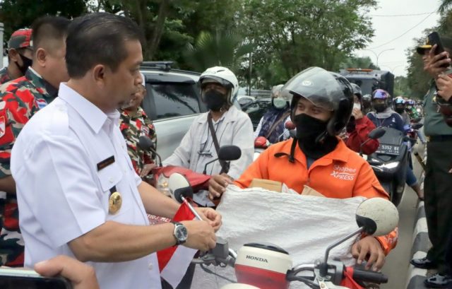 Pembagian bendera secara gratis tersebut merupakan bagian dari Gerakan Pembagian 10 Juta Bendera Merah Putih yang digagas oleh Kementerian Dalam Negeri RI.