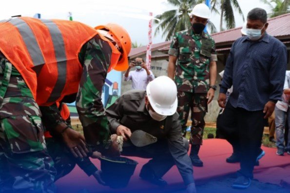 Gubernur Kaltim Dr H Isran Noor bersama Panglima Kodam VI Mulawarman Mayor Jenderal TNI Tri Budi Utomo melakukan peletakan batu pertama (groundbreaking) pembangunan rumah layak huni (RLH) di wilayah RT 17 Kelurahan Lamaru Kecamatan Balikpapan Timur, Senin (25/07).
