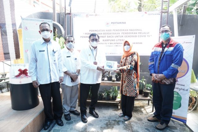 Balikpapan, Borneoupdate.com – Literasi merupakan salah satu kebutuhan dasar manusia. Mendukung hal tersebut, bekerja sama dengan Taman Baca Masyarakat (TBM) An-Nisaa, Pertamina RU Area Balikpapan mengembangkan Kampung Literasi di Kelurahan Klandasan Ilir. Menyambut Hari Pendidikan Nasional, Pertamina menyerahkan sejumlah bantuan kepada TBM An-Nisaa. (Rabu, 05/05). Penyerahan bantuan disaksikan oleh Walikota Balikpapan Rizal Effendi.