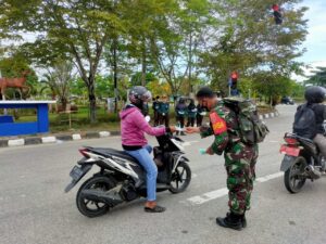 Penajam, Borneoupdate.com – Dalam rangka memperingati Hari Sumpah Pemuda yang ke 92, yang jatuh pada 28 Oktober 2020 kemarin, Babinsa Koramil 01 Penajam Serda Heri mendampingi satuan karya pramuka (Saka Wira Kartika) Binaan Kodim 0913/PPU dengan melaksakan kegiatan sosial dengan membagikan masker kepada warga Penajam Paser Utara (PPU). Rabu (28/10/2020).