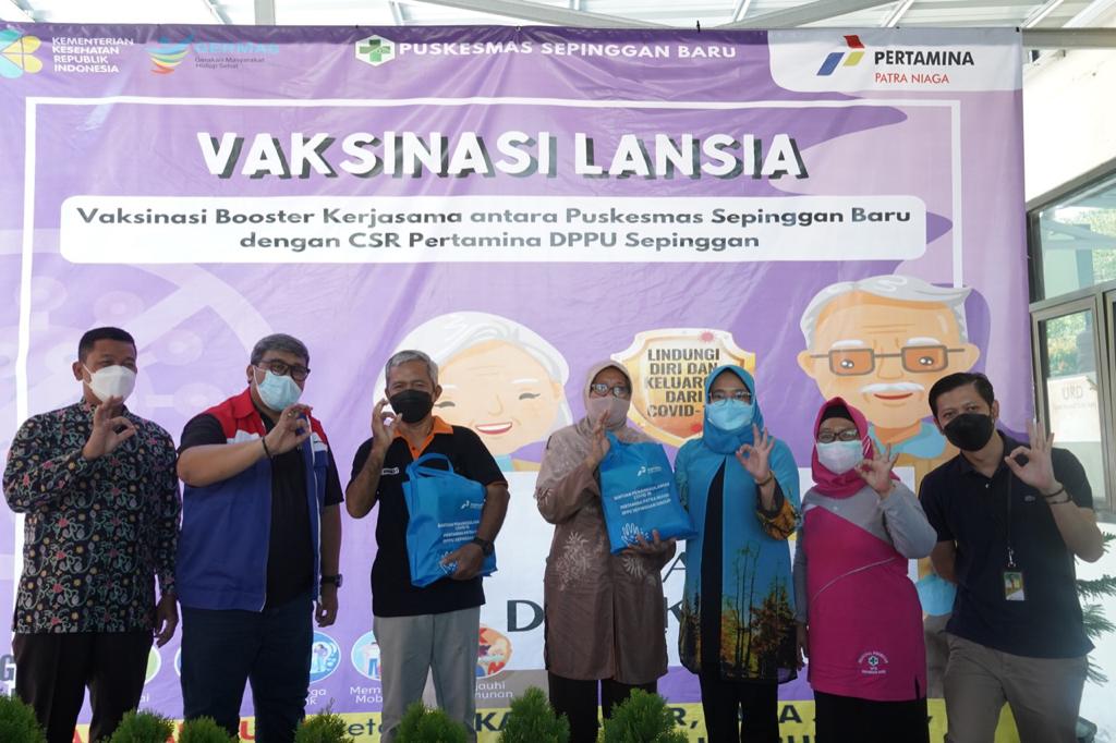 Dalam rangka menggaet peserta dengan cakupan usia duatas 60 tahun sebagai sasaran vaksinasi booster lansia, Pertamina DPPU Sepinggan menyediakan 100 paket sembako bagi 100 lansia yang mendaftar. Tujuannya selain menarik minat kalangan lansia untuk divaksin, paket sembako juga diberikan kepada lansia dari kalangan menengah kebawah dimasa pandemic covid ini. Selain bantuan tersebut Pertamina DPPU Sepinggan juga memberikan extra fooding dan dukungan tenaga Kesehatan berupa vitamin, masker dan handsanitizer untuk Puskesmas Sepinggan. Dukungan tersebut dalam rangka mendukung tenaga Kesehatan di Puskesmas Sepinggan dalam memberikan layanan Kesehatan bagi masyarakat.