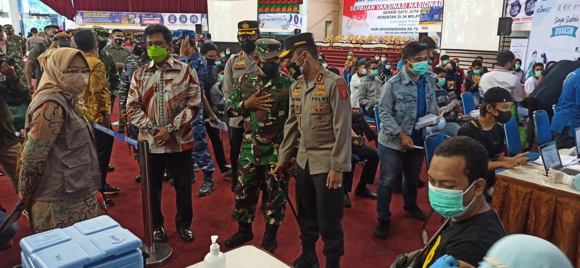 Balikpapan, Borneoupdate.com -Pelaksanaan serbuan vaksinasi nasional TNI-POLRI sehari satu juta orang serentak di 34 wilayah polisi daerah (Polda) dalam rangka Hari Bhayangkara ke 75 di Balikpapan Sport Center Convention (BSCC/DOME), Sabtu (26/6/2021).