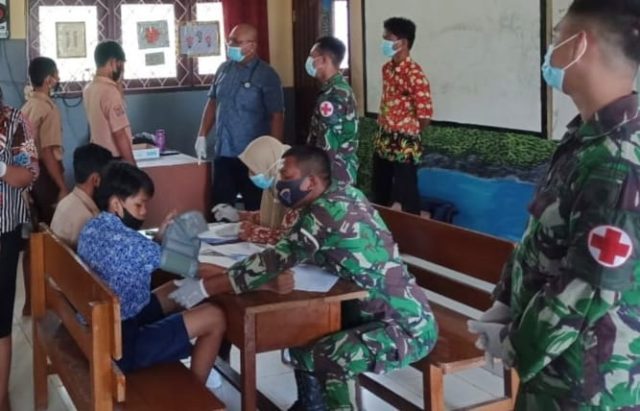 Malinau, Borneoupdate.com – Satuan Tugas Pengamanan Perbatasan Yonif 614/Raja Pandhita di Pos Kout melaksanakan pengecekan kesehatan terhadap murid – murid sekolah di SMPN 002 Malinau Barat, Desa Sesua, Kec.Malinau Barat, Kabupaten Malinau, Provinsi Kaltara. Senin 14/6/2021.