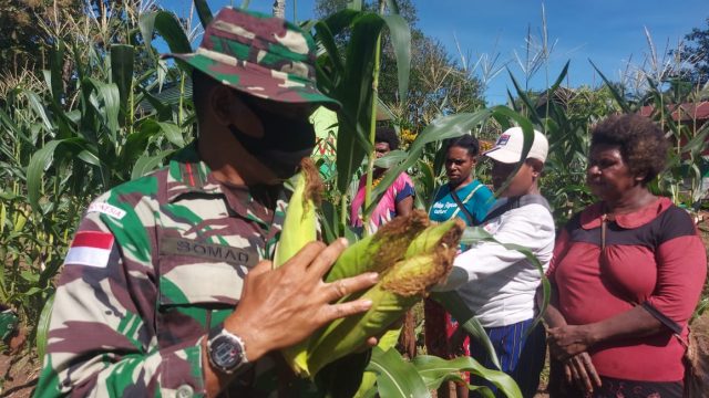 “Panen Hanpangan ini merupakan panen perdana yang kami laksanakan bersama masyarakat Kampung Toray, kebun ini berisi tanaman-tanaman seperti jagung manis, mentimun, kacang panjang, dan sayur pare.” ujar Danpos Toray.