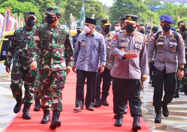 Balikpapan, Borneoupdate.com – Panglima TNI Marsekal Hadi Tjahjanto bersama Kapolri Jenderal Listyo Sigit Prabowo meninjau program vaksinasi massal di BSCC DOME Balikpapan, Kalimantan Timur, Jumat, (6/8/2021). Pelaksanaan vaksinasi massal ini kerja sama antara TNI-Polri dengan Balikpapan dengan melibatkan AKBID Borneo Medistra, Ummi Aisiyah dan Politeknik Kesehatan Kemenkes, Balikpapan.