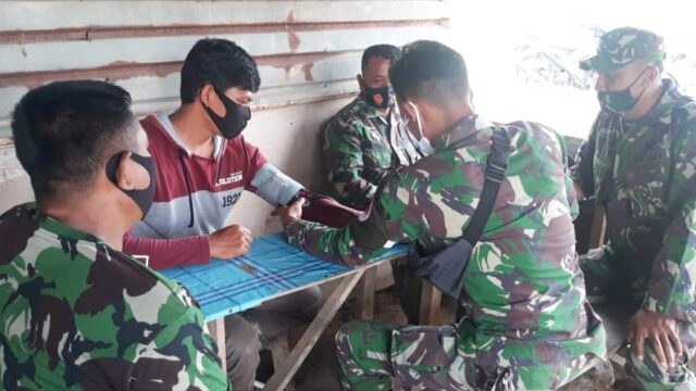 Tarakan, Borneoupdate.com – Demi menjaga kesehatan di musim pandemi saat ini, Petugas Kesehatan yang tergabung dalam Satgas TMMD ke – 109 Kodim 0907/Trk Rutin melakukan pengecekan terhadap kesehatan Prajurit maupun warga setempat sebelum mengawali kegiatan fisik disasaran.